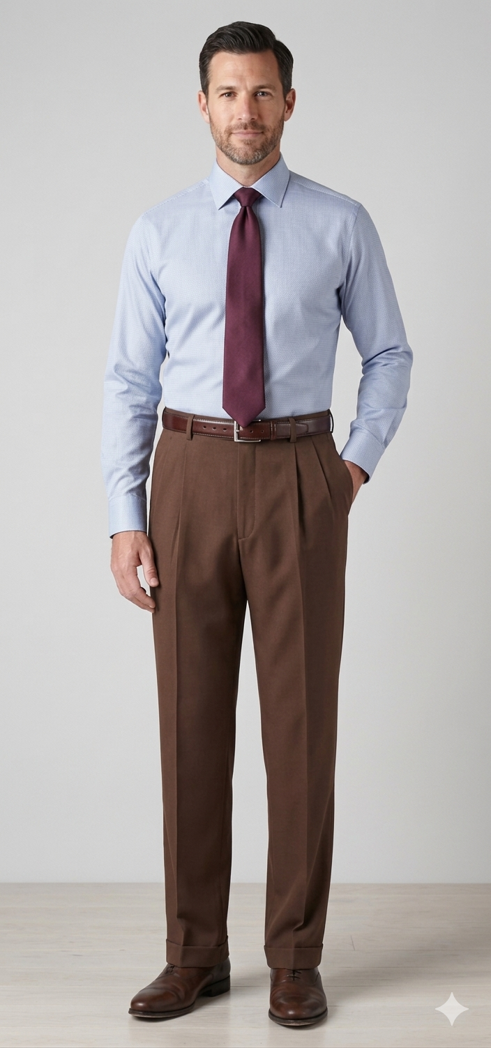 Este patronaje bespoke de pantalón de hombre de dos pliegues delanteros considera como máximo de 58 cm en la cadera, para el corte de la tela se debe cabecear el molde delantero con el trasero. El patronaje incluye ensanches para las costuras, sin embargo no considera un ensanche para la costura de la posadera y un ensanche en la entre pierna para eventuales ampliaciones de la medida del muslo. Para la basta se puede considerar seis o siete centímetros para un doblado simple hacia adentro, sin embargo se puede considerar 12 cm en la basta para doblados externos.